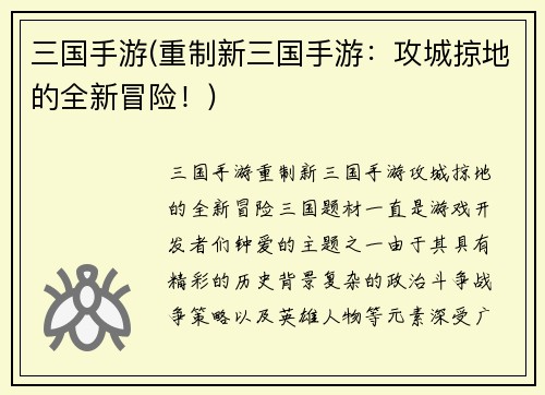 三国手游(重制新三国手游:攻城掠地的全新冒险!)